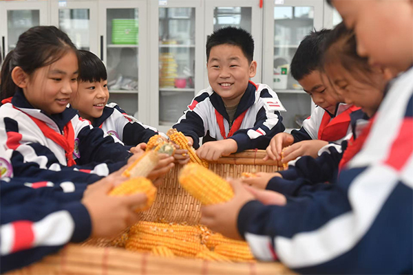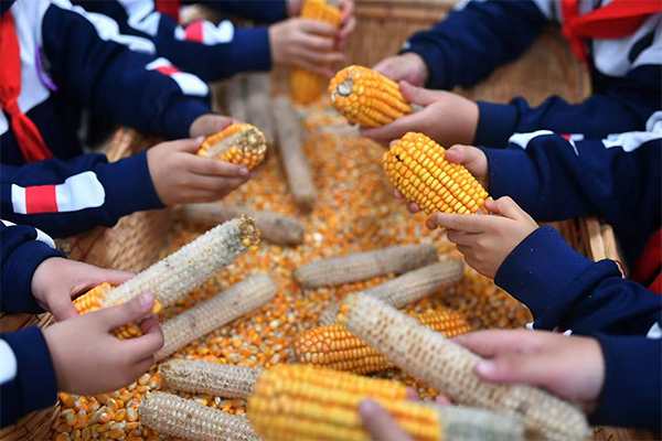 10月15日,山東省青島市市北區(qū)杭州路小學(xué)開展“愛惜糧食 從我做起”主題活動,孩子們通過辨識糧谷作物、搓玉米比賽、手繪知糧惜糧海報等形式,從小樹立愛惜糧食的意識和習(xí)慣,迎接“世界糧食日”。 (王海濱)