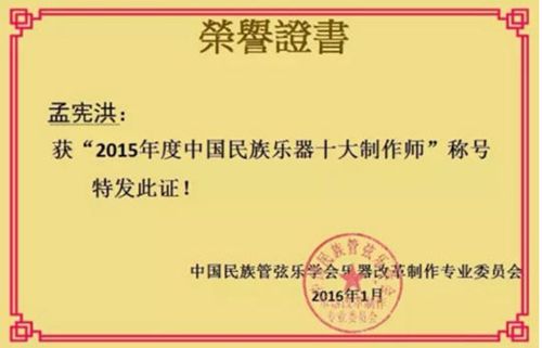 ▲2015年孟憲洪獲"中國(guó)民族樂器十大制作師"稱號(hào)