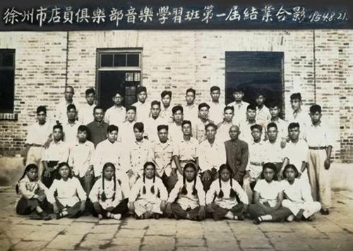 ▲1954年徐州市店員俱樂部音樂學(xué)習(xí)班第一屆結(jié)業(yè)合影,陳鼐公(二排左六)時(shí)任學(xué)習(xí)班班主任。