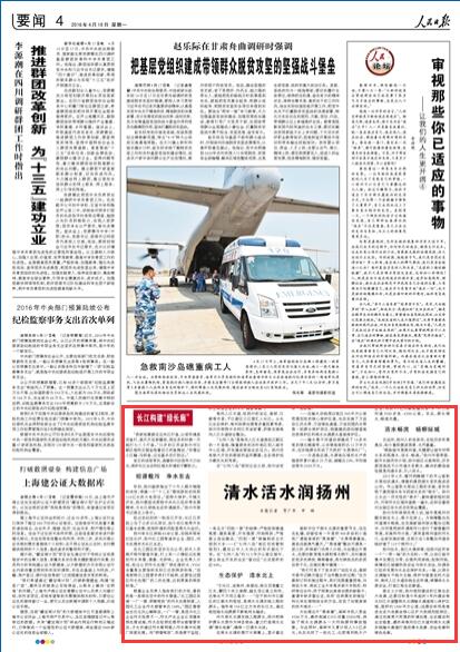 人民日?qǐng)?bào):長江構(gòu)建"綠長廊" 清水活水潤揚(yáng)州