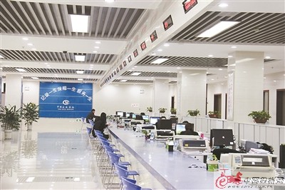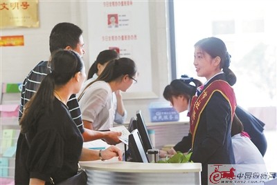 徐州市社保中心征繳大廳業(yè)務(wù)經(jīng)辦人員微笑服務(wù)。