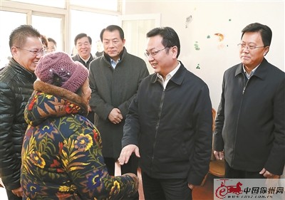 張國(guó)華一行首先來(lái)到胡寨鎮(zhèn)草廟村養(yǎng)老服務(wù)中心,看望慰問五保老人。一走進(jìn)養(yǎng)老服務(wù)中心,張國(guó)華就親切地握著李樂俠老人的手,關(guān)切地詢問她的生活和身體情況,并祝老人新春愉快、健康長(zhǎng)壽。李樂俠老人雖然已是九十高齡,但身子骨依然十分硬朗,老太太笑著告訴大家,她在這里的日子過(guò)得很舒心,服務(wù)中心工作人員對(duì)她照顧得很周到,這都是黨和政府的關(guān)心?吹椒⻊(wù)中心各種設(shè)施配備齊全,服務(wù)中心工作人員還經(jīng)常組織老人開展文體活動(dòng),定期為老人檢查身體,并為每位老人建立了健康檔案。張國(guó)華十分高興地說(shuō),健全養(yǎng)老服務(wù)體系,辦好養(yǎng)老服務(wù)事業(yè),對(duì)于共建共享全面小康、促進(jìn)社會(huì)和諧穩(wěn)定,具有重要意義。要健全體制機(jī)制,積極創(chuàng)新改革,把政府投入和市場(chǎng)運(yùn)作有機(jī)結(jié)合起來(lái),拓展服務(wù)領(lǐng)域、豐富服務(wù)內(nèi)容,進(jìn)一步提高養(yǎng)老服務(wù)水平,為更多老年人提高優(yōu)質(zhì)的養(yǎng)老服務(wù)。