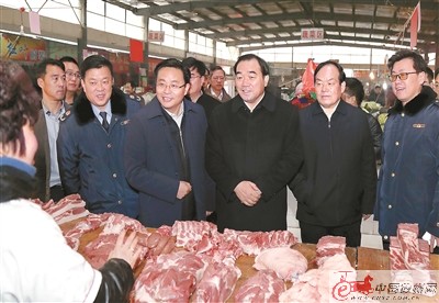 市長(zhǎng)周鐵根在銅山新區(qū)檢查圭山農(nóng)貿(mào)市場(chǎng)食品安全等。 徐州日?qǐng)?bào)記者 徐劍 攝