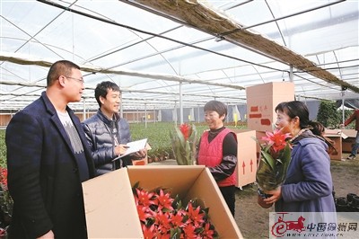 邳州市委組織部遠教中心工作人員到花卉種植基地了解群眾就業(yè)情況。 通訊員 丁利 攝