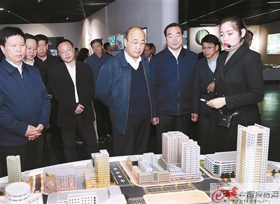 市長(zhǎng)周鐵根等領(lǐng)導(dǎo)陪同平頂山市黨政代表團(tuán)在我市規(guī)劃館參觀考察。徐州日?qǐng)?bào)記者 齊浩 攝