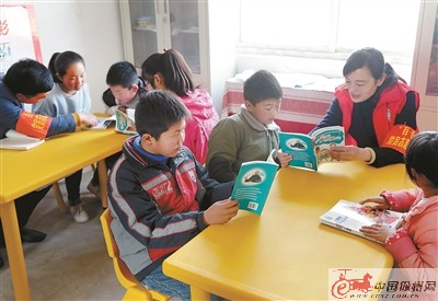 陶河村“希望來吧”內(nèi),黨員志愿者給留守兒童輔導(dǎo)。