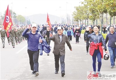 記者在活動現(xiàn)場發(fā)現(xiàn),此次活動規(guī)模壯大,參加健步走的隊伍中,年齡跨度從20多歲到50多歲不等,機關(guān)單位各自組成方隊,大家以整齊的步伐,走出飽滿的精神狀態(tài)。