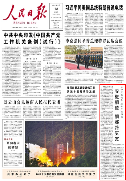 人民日?qǐng)?bào)頭版:安徽銅陵 銅都路更寬