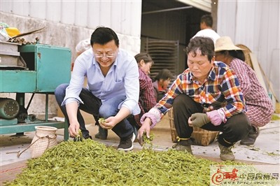 徐州市茶業(yè)協(xié)會會長張曉東和潤思茶農(nóng)一起分揀鮮葉。