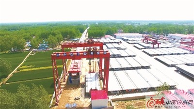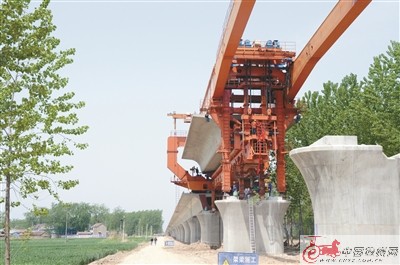 左圖 架梁施工現(xiàn)場。