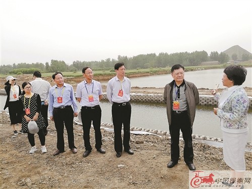 人大代表們在臨黃河工程現(xiàn)場視察。