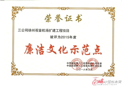 2015年度徐州觀音機(jī)場擴(kuò)建工程項(xiàng)目廉潔文化示范點(diǎn)。