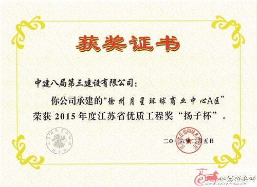 2015年度徐州月星環(huán)球商業(yè)中心A區(qū)獲江蘇省“揚(yáng)子杯”。