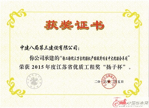 2015年度徐工徐挖聯(lián)合車間項(xiàng)目工程獲江蘇省“揚(yáng)子杯”。
