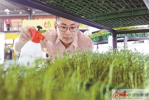 無土栽培區(qū)坐落在展廳最中心的位置。里面種植的都是利用純凈水培育的各色太空菜,拽下幾棵,蘸上醬料,就能現(xiàn)場品嘗。薅幾棵小苗回家,也能種出安全健康的蔬菜呢。
