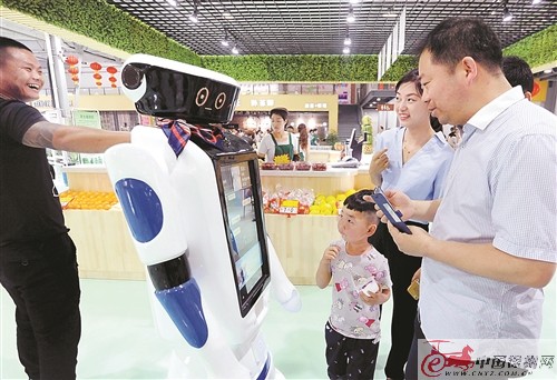 5月28日,雨潤農(nóng)產(chǎn)品特色小鎮(zhèn)開門迎客。走進雨潤體驗中心,機器人迎面而來,科技感十足。體驗中心徹底打破了傳統(tǒng)超市的模式,將市民的體驗放在首位。