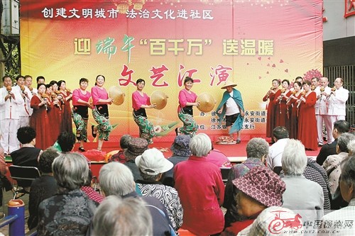 5月26日,永安街道余窯社區(qū)舉辦“迎端午 百千萬送溫暖”活動,F(xiàn)場,大型歌舞《梨花頌》,葫蘆絲吹奏《花兒香》、詩朗誦《祭屈原》、京劇《沙家浜》選段等豐富多彩的節(jié)目,為轄區(qū)居民帶來了一場精彩的視覺盛宴。