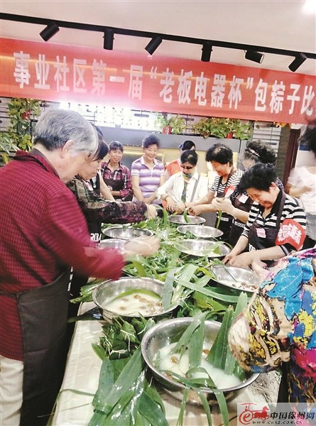 傳承和弘揚傳統(tǒng)文化,豐富居民文化生活,5月25日上午,和平街道事業(yè)社區(qū)聯(lián)合老板電器等轄區(qū)非公企業(yè)單位,開展了“粽葉飄香、情滿社區(qū)——第一屆包粽子比賽”,社區(qū)居民和轄區(qū)單位共30余人參加了比賽。