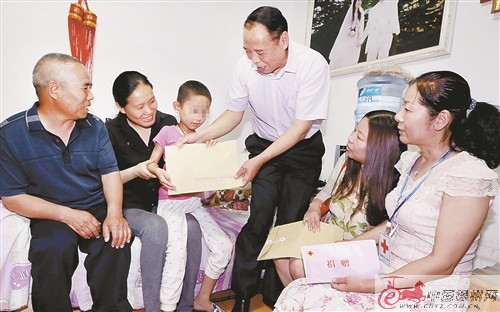 這些特殊客人,是鼓樓區(qū)關工委、組織部、老干部局、審計局、財政局、紅十字會的代表和轄區(qū)街道、社區(qū)的干部。區(qū)關工委主任王盛強笑嘻嘻地迎了上去,拉著他的小手說,“六一”兒童節(jié)快要到了,今天我們來,提前祝你節(jié)日快樂。