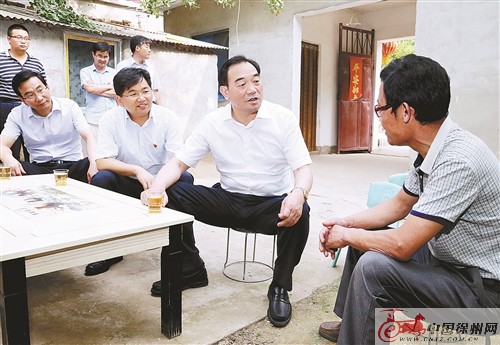 在石壩村,周鐵根入農(nóng)家、聊家常,傾聽群眾對黨委政府工作、脫貧致富舉措的意見建議。黨員丁慶美創(chuàng)建了銀杏合作社,投資板材加工行業(yè),帶領(lǐng)村里100余戶村民創(chuàng)業(yè)就業(yè),6戶村民因此實現(xiàn)脫貧。周鐵根勉勵他說,要發(fā)揮好黨員的模范帶頭作用,帶領(lǐng)更多的村民特別是困難群眾實現(xiàn)脫貧致富。村民韓建業(yè)因眼睛患有殘疾,加上兩個孩子同時上大學(xué)經(jīng)濟負擔(dān)重致貧。村里通過安排其夫妻二人入廠打工,現(xiàn)在月收入4000多元。周鐵根叮囑村黨支部和基層黨員要多關(guān)心照顧困難群眾的生活,力所能及地幫助解決實際問題。同時,要通過大力發(fā)展產(chǎn)業(yè),為村民提供更多的就業(yè)崗位。