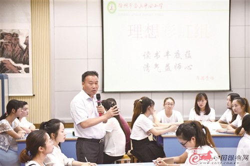 伴著舒緩的音樂,似乎所有人都沉浸在這書香四溢的環(huán)境中,忘卻了自己,成為故事中的主角,陶醉其中。“理想彩虹組”分享的書籍是《做最棒的老師》,古人云:“師者,傳道授業(yè)解惑也”,古往今來,教師的事業(yè)崇高而偉大,做一名受人愛戴的老師是每一位教師的職業(yè)追求。分享至此,現(xiàn)場教師的臉上無不流露出自豪的神情。
