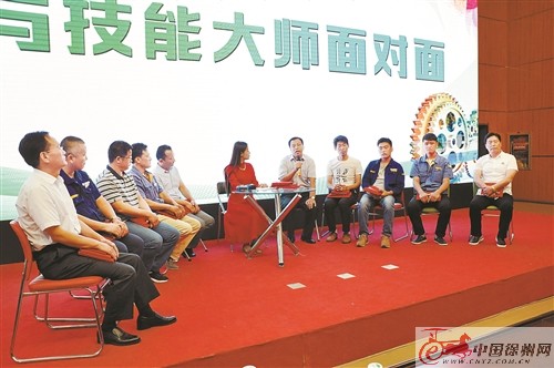開幕式現(xiàn)場(chǎng)還舉行了“我與技能大師面對(duì)面”活動(dòng),技師學(xué)院唐自強(qiáng)副院長(zhǎng)、江蘇工貿(mào)技師學(xué)院徐建春院長(zhǎng)、江蘇煤電技師學(xué)院靖大同院長(zhǎng)、江蘇機(jī)電技師學(xué)院倪羅平副院長(zhǎng)、徐州工程機(jī)械技師學(xué)院劉邦才副院長(zhǎng)分別向技能大師工作室領(lǐng)辦人頒發(fā)聘書。10位技能大師工作室領(lǐng)辦人、省技能狀元、技術(shù)能手,還與青年學(xué)生進(jìn)行了面對(duì)面的親切交流,分享成長(zhǎng)經(jīng)驗(yàn),介紹奮斗歷程。