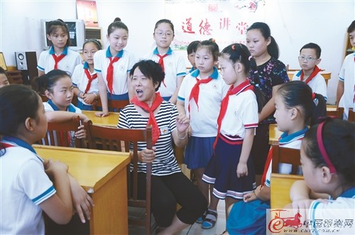 黨員志愿者為小學生開展“文明禮儀伴我行”為主的道德講堂。