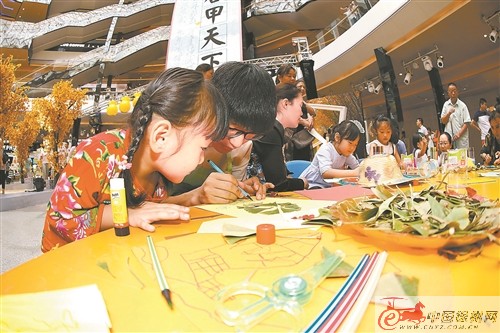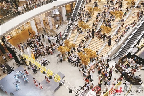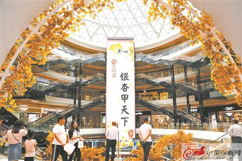 徐州蘇寧廣場(chǎng)下沉天幕廣場(chǎng)被裝扮成邳州“銀杏時(shí)光隧道”的金色世界。銀杏盆景欣賞區(qū)、仿真的銀杏樹以及寫真造景區(qū),新奇又有趣,讓人仿佛置身邳州;兒童銀杏葉創(chuàng)意畫區(qū),小朋友們爭(zhēng)相用曬干的銀杏葉作畫、創(chuàng)作;旁邊的茶藝展示區(qū),茶藝師傅精心沖泡的銀杏茶讓顧客在小憩中了解邳州的特產(chǎn);邳州民間民俗藝術(shù)展示區(qū),民間藝人們展示著邳州農(nóng)民畫、紙塑獅子頭、邳州剪紙、邳州書法等傳統(tǒng)文化。