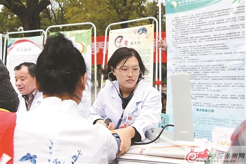 醫(yī)護(hù)人員免費(fèi)測量血壓。