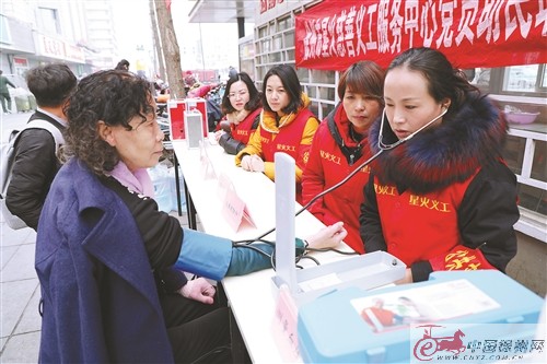 志愿者為市民和外地游客免費(fèi)測量血壓。