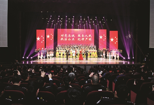 報告會上,來自公安基層的警官演職人員,用歌曲、舞蹈、小品等多種文藝形式,再現(xiàn)了“鐵軍衛(wèi)士”和“鐵軍警隊(duì)”真實(shí)工作生活狀態(tài)。一組組用“忠誠和使命”鑄就的群體,一個個用“責(zé)任和擔(dān)當(dāng)”譜寫的篇章,每一組群體中都印記著許多動人的故事,每一個故事中都凝聚著對公安事業(yè)的忠誠和信仰,他們像一面鏡子,映襯出徐州警方鐵骨錚錚的堅(jiān)韌和執(zhí)著。
