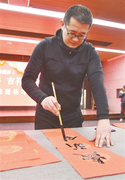 丹青引楚風(fēng)漢韻,筆墨觀家國情懷。雄踞兩漢文化、楚文化、中原文化和齊魯文化交匯點(diǎn)上的徐州,兼具南秀北雄風(fēng)采的文化神韻,在中華民族的文化史上具有十分獨(dú)特的地位。徐州文墨鼎盛,藝術(shù)大家輩出。近年來,在徐州美術(shù)館(藝術(shù)館)的組織下,徐州本土?xí)乙源汗?jié)為節(jié)點(diǎn),以楹聯(lián)為載體,以徐州日報(bào)為平臺(tái),用一場場醞釀已久的書法藝術(shù)盛宴祝福家鄉(xiāng)人民,回報(bào)父老鄉(xiāng)親,拳拳之情躍然紙上。2018年,本報(bào)再次擷取中國書協(xié)會(huì)員,徐州市書協(xié)主席、顧問、副主席共9位成員的作品,以筆墨傳情,祝福廣大讀者在新的一年闔家歡樂,福泰安康。