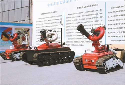 徐州高新區(qū)傳感器科技產(chǎn)業(yè)園展示的消防滅火機(jī)器人。