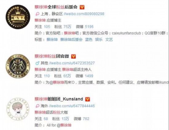 以《偶像練習(xí)生》里人氣最高的蔡徐坤為例,網(wǎng)上有不少為其成立的粉絲組織。