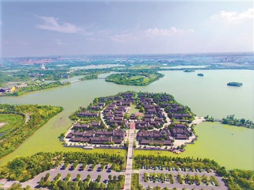 航拍鏡頭下的潘安湖湖闊景美、游人如織