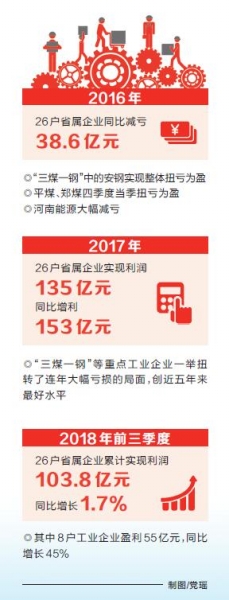 2016年,26戶省屬企業(yè)同比減虧38.6億元,尤其是“三煤一鋼”中的安鋼實現(xiàn)整體扭虧為盈,平煤、鄭煤四季度當(dāng)季扭虧為盈,河南能源也大幅減虧。