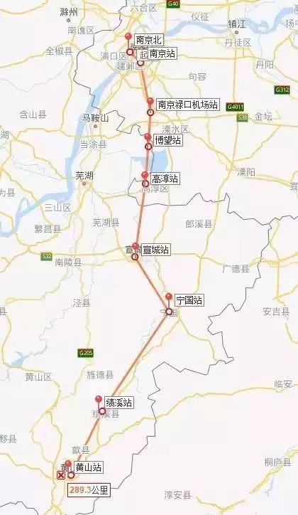 而后引出經(jīng)西橫山西進(jìn)入安徽省,在馬鞍山市博望區(qū)設(shè)博望站,向南至南京市高淳區(qū)陽江鎮(zhèn)北側(cè)設(shè)高淳站,繼續(xù)向南接入宣城站,沿途繼設(shè)寧國站、績溪站、黃山站。