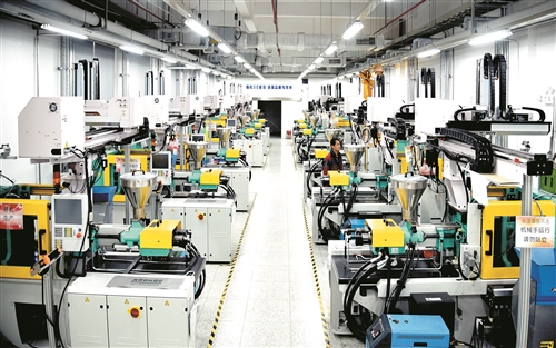 幾公里外,徐州經(jīng)開區(qū)東環(huán)街道新微半導(dǎo)體產(chǎn)業(yè)園內(nèi),臺(tái)灣正崴連接器事業(yè)部的車間里,射出機(jī)正將顆粒狀的原材料注塑到一個(gè)個(gè)微妙的金屬磨具中,經(jīng)過(guò)系列工序后,便成了手機(jī)、電腦等電子產(chǎn)品中最精妙的零部件。
