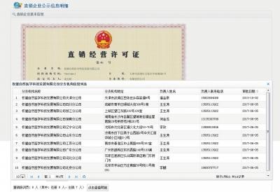 商務部直銷行業(yè)管理網(wǎng)上可查出權(quán)健公司公示的直銷區(qū)域10個分支機構(gòu)