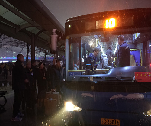 公交公司積極做好與鐵路的運(yùn)輸銜接工作,與高鐵站建立了信息聯(lián)動(dòng)機(jī)制,明確了專人進(jìn)行現(xiàn)場(chǎng)調(diào)度,及時(shí)了解高鐵臨客加班情況和旅客到達(dá)時(shí)間。據(jù)了解,高鐵客流在晚22點(diǎn)以后至凌晨0點(diǎn)40分最為集中,常常出現(xiàn)四、五列次直達(dá)徐州的高鐵同時(shí)到站,為確保乘客能夠快捷順暢的換乘,公交10路夜班車增加了2輛雙層公交車,加班22個(gè)班次,同時(shí),在客流密集時(shí)段開(kāi)通了到老火車站的直達(dá)公交車,發(fā)車間隔縮短至3-4分鐘一班,暢通了旅客出行的“最先和最后一公里”。為及時(shí)疏導(dǎo)客流,公交公司管理人員每天值守在站臺(tái),引導(dǎo)旅客有序安全乘車。春節(jié)黃金周期間,公交 10路車共臨時(shí)加班公交車輛23輛次,加班47個(gè)班次,延長(zhǎng)運(yùn)營(yíng)服務(wù)時(shí)間4次,其中:28日(初四)因大雪、冰凍惡劣天氣,夜間加班至次日凌晨2:00左右。