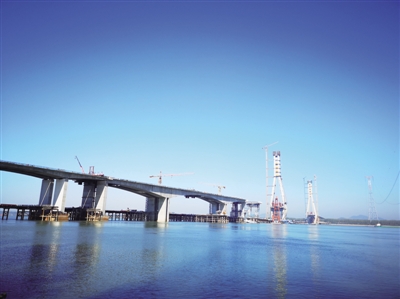 秋浦河大橋主橋共分為41個梁段,標(biāo)準(zhǔn)節(jié)長度為9m,目前秋浦河大橋已成功架設(shè)安裝12榀加勁梁段,還需架設(shè)安裝29個梁段,全橋預(yù)計(jì)3月底合龍。