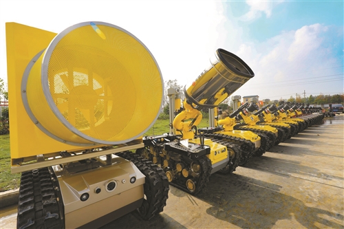 水下機(jī)器人、泡沫滅火機(jī)器人、排煙滅火機(jī)器人……在泉山經(jīng)濟(jì)開發(fā)區(qū)一企業(yè)生產(chǎn)車間里,標(biāo)準(zhǔn)化的生產(chǎn)線,一臺(tái)臺(tái)消防機(jī)器人正在加緊組裝成型,工作人員正在進(jìn)行新機(jī)測(cè)試。生產(chǎn)線的一側(cè),一臺(tái)臺(tái)機(jī)器人一字排開,整裝待發(fā)。