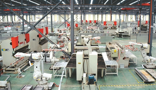 4月2日,位于徐州經(jīng)開區(qū)大廟街道的升華電梯垂梯制造車間里,滿眼盡是舞動著白色手臂的機器人,抓舉、旋轉(zhuǎn)、放進車床、下件、碼放……動作靈活敏銳、有條不紊,整個過程沒有一個工人。 徐州日報全媒體記者 季芳 通訊員 馮鈺茹 攝 |