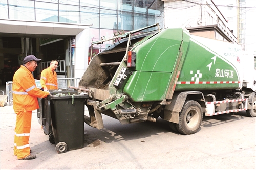 2013年起,泉山區(qū)城管局為了完善垃圾收運(yùn)體系,統(tǒng)一配備69臺全自動垃圾壓縮車,每臺車輛價值近40萬元,自動化程度包括電動操作垃圾桶上下以及車內(nèi)直接壓縮,僅僅需要人工掛桶。