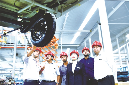 巴基斯坦客商在淮海集團現場察看產品質量。