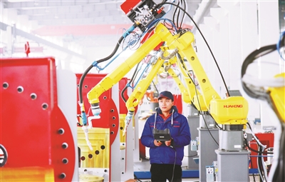 智能機器人生產(chǎn)線。 本報全媒體記者 孫井賢 攝