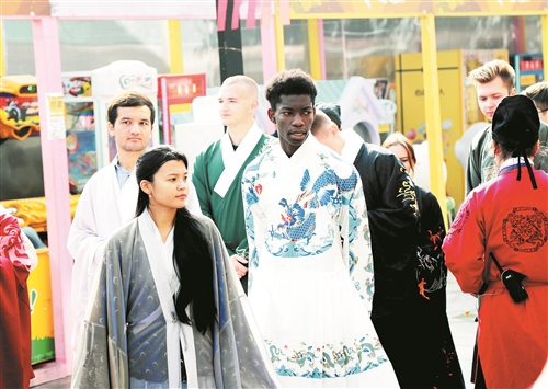 本次徐州(戶(hù)部山)漢服嘉年華以“國(guó)潮漢風(fēng) 漢家霓裳”為主題,開(kāi)幕式上,身著漢、唐、宋、明等朝代漢服的表演者優(yōu)雅地展示了衣冠禮儀這一華夏文明特有的人文風(fēng)貌,由徐州工程學(xué)院6位留學(xué)生帶來(lái)的漢服秀表演別具一格,引人注目。