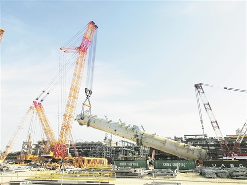 沙特沙比克聯(lián)合化工項(xiàng)目位于高溫炎熱的沙漠地帶,由中石化參與承建。其中,洗滌塔是項(xiàng)目裝置中最核心、最重的部件。據(jù)中石化項(xiàng)目負(fù)責(zé)人介紹,此次吊裝的洗滌塔,重達(dá)1926噸、高101.1米、直徑8.6米,如果沒(méi)有超大噸位起重機(jī),需要將其一節(jié)一節(jié)分開(kāi)吊裝再逐層焊接,工期長(zhǎng)達(dá)3個(gè)月,而且存在很高的安全風(fēng)險(xiǎn)。