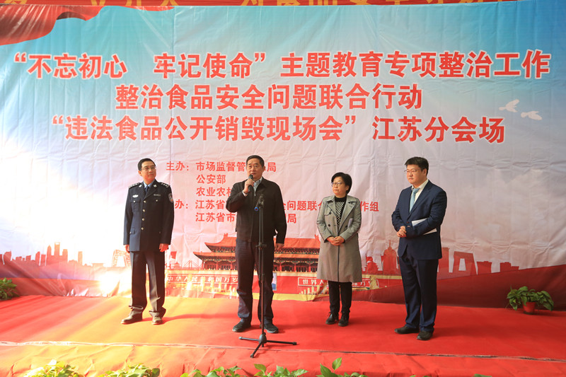 11月20日,根據(jù)市場監(jiān)管總局的統(tǒng)一部署,江蘇省整治食品安全問題聯(lián)合行動工作組、省市場監(jiān)管局在南京市江寧區(qū)舉行整治食品安全問題聯(lián)合行動違法食品公開銷毀現(xiàn)場會。市場監(jiān)管總局稽查局一級巡視員馬雪冰出席并宣布現(xiàn)場銷毀活動啟動,省市場監(jiān)管局二級巡視員陳柯出席并講話。