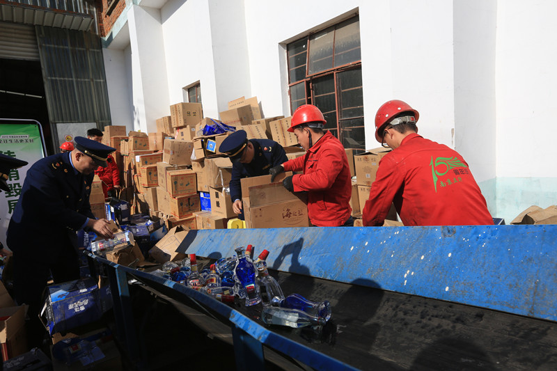 本次違法食品公開銷毀活動是整治食品安全問題聯(lián)合行動的一項重要工作,是聯(lián)合行動成果的一次集中展示,充分展示了市場監(jiān)管部門打擊食品安全違法犯罪行為的堅強決心。活動現(xiàn)場集中展示并銷毀的問題食品主要是聯(lián)合行動中查辦大要案件的罰沒物資,共28大類56個品種,其中假冒保健食品136盒、假劣白酒6700瓶及假劣飲料485箱、劣質(zhì)食鹽5450袋、劣質(zhì)肉及肉制品625袋,共計53.9噸,按正品價值計算貨值超過650萬元。